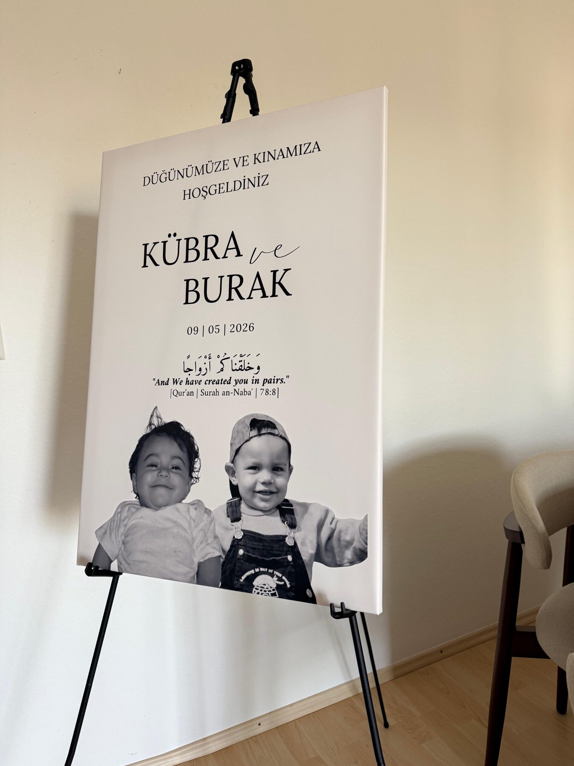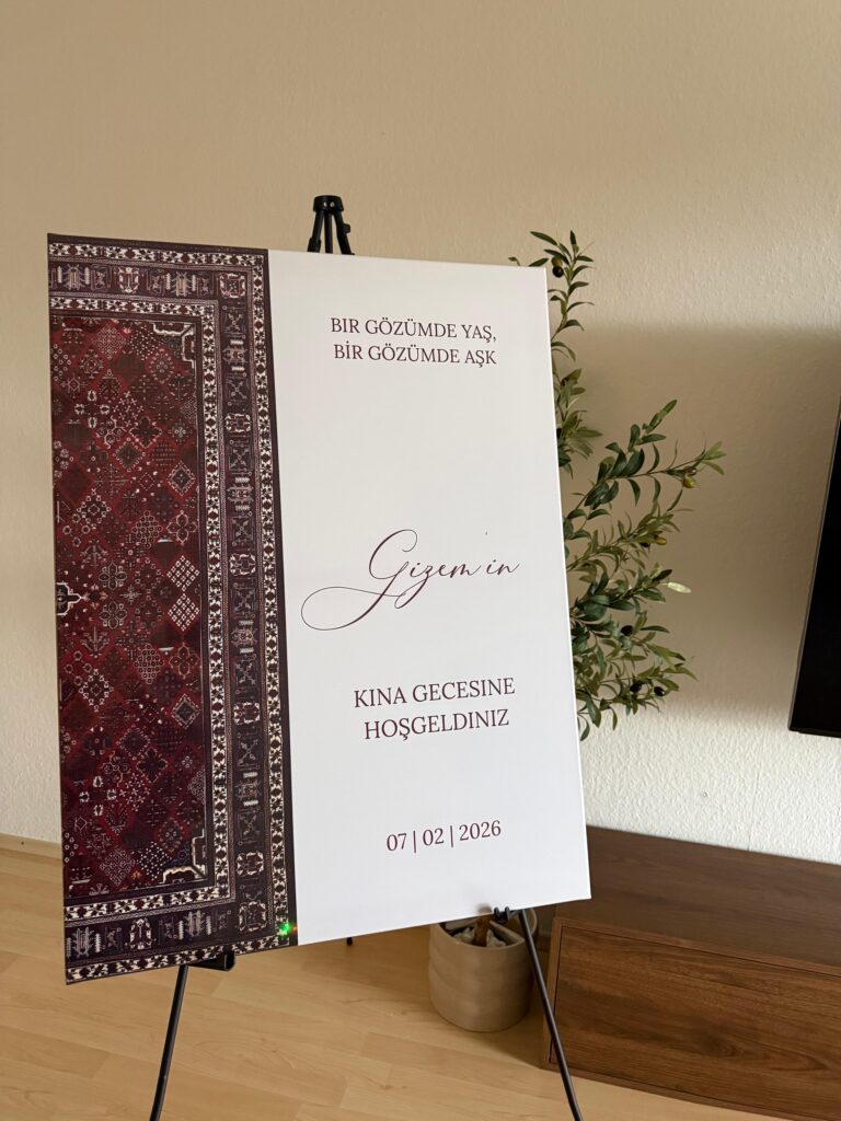 Personalisierte Empfangstafel Hochzeit ist die perfekte Wahl für deinen besonderen Tag und sorgt für einen eleganten ersten Eindruck bei deinen Gästen. Ob Hochzeit, Verlobung, Henna-Abend, Nikah, Nişan, Söz, Standesamt oder Babyshower – dieses individuelle Willkommensschild macht dein Event unvergesslich und verleiht deiner Feier eine persönliche Note.