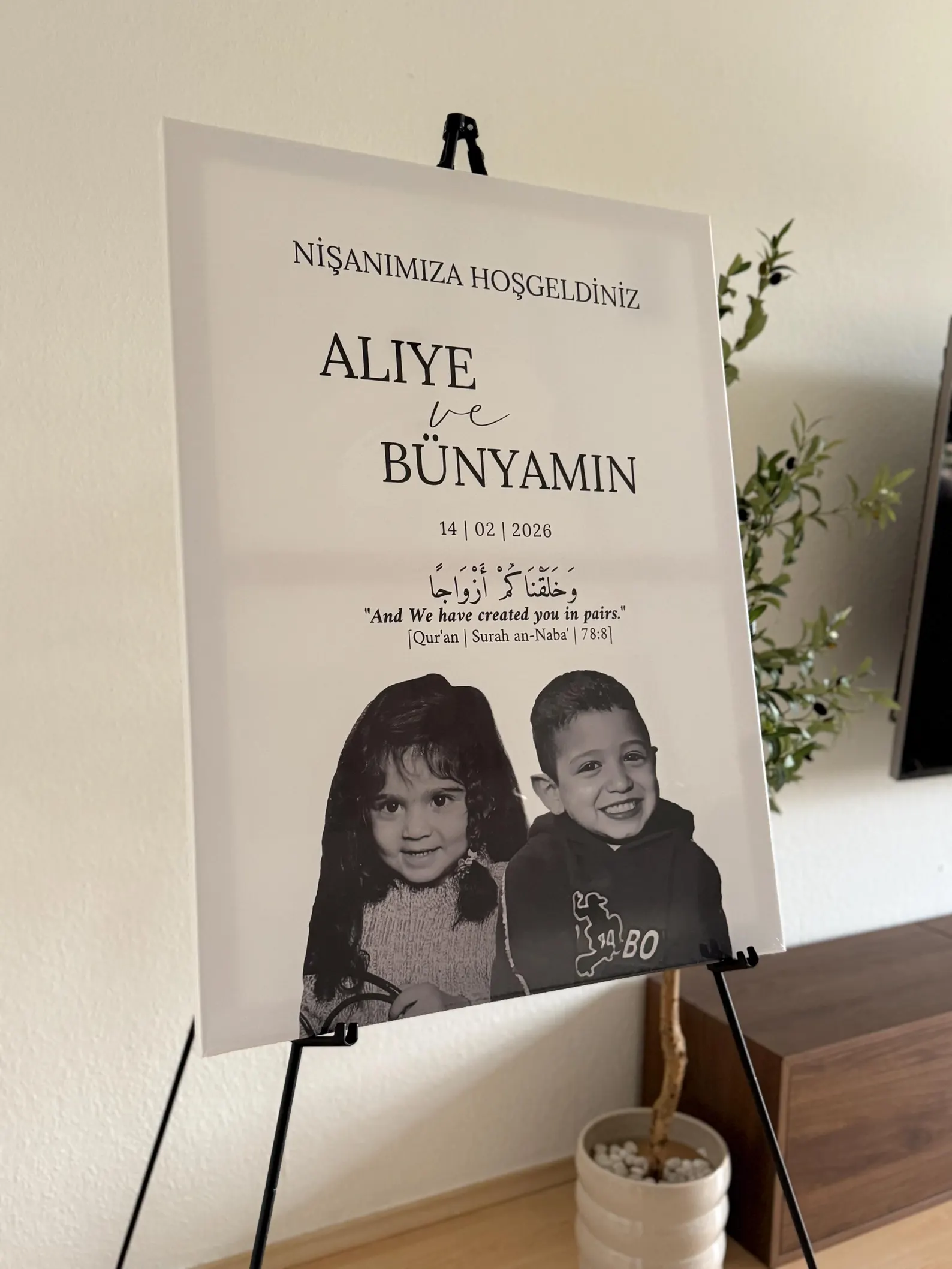 Unsere Personalisierte Empfangstafel Hochzeit ist die perfekte Dekoration für Hochzeit, Verlobung, Henna-Abend, Nikah, Nişan, Söz, Standesamt oder Babyshower.