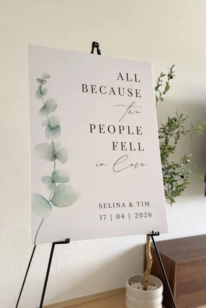 Mit individuellen Namen und Datum gestaltet, empfängt dieses stilvolle Schild deine Gäste auf elegante Weise.