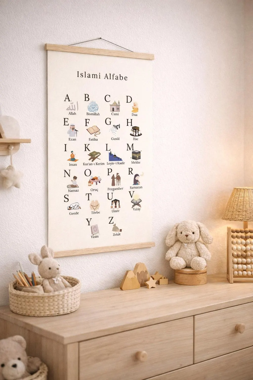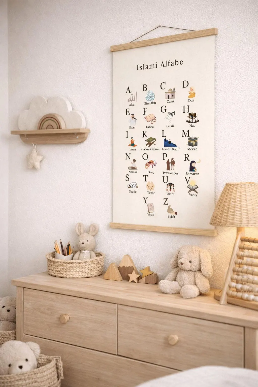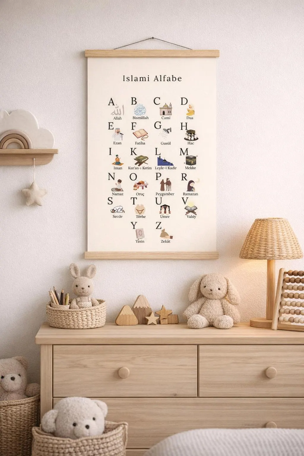 Bring learning and design together with this Islamic alphabet poster for kids. Create a beautiful and educational space your child will love.
