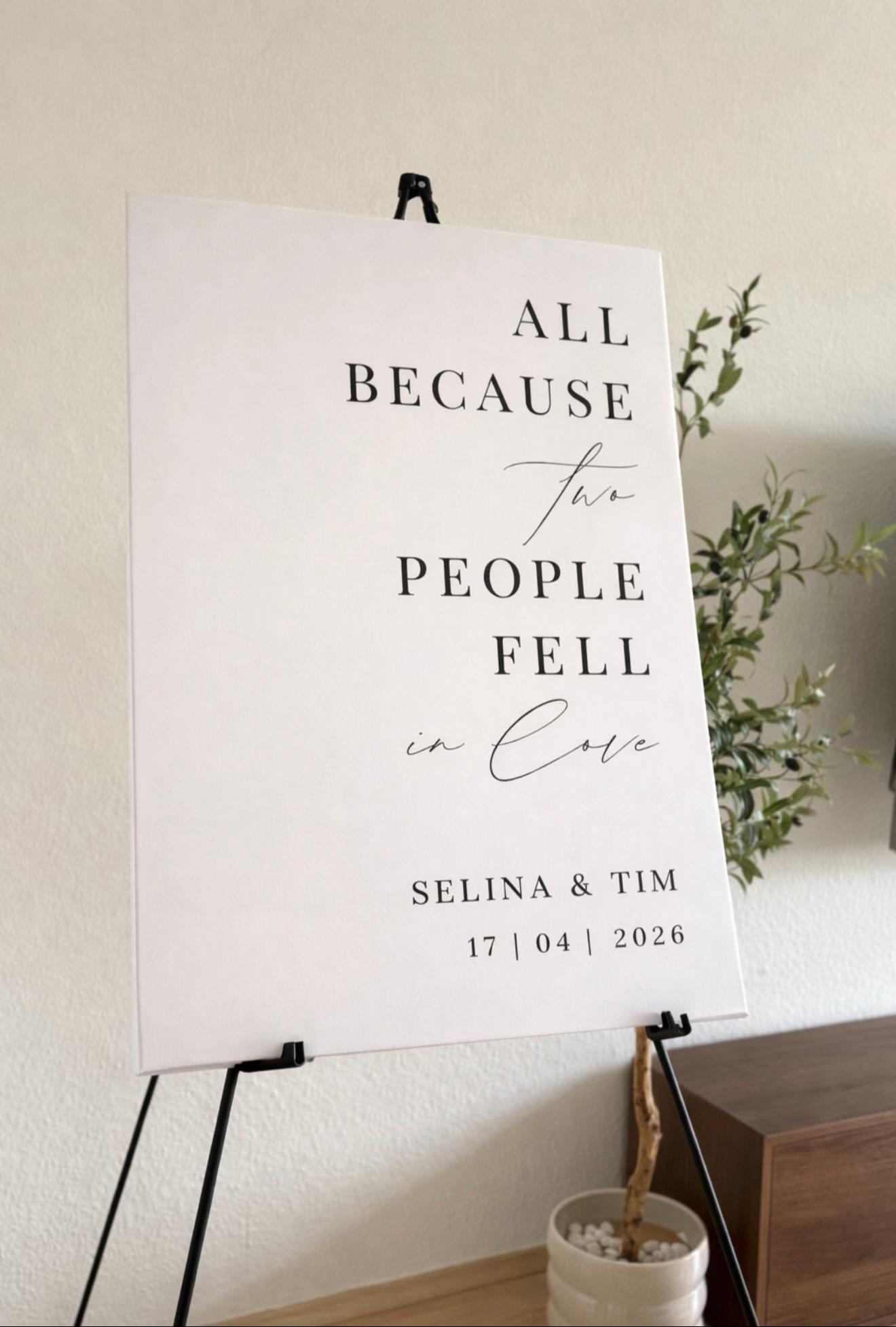 Die personalisierte Empfangstafel Hochzeit ist nicht nur Dekoration, sondern auch ein beliebter Fotospot. Deine Gäste werden sie lieben und unvergessliche Erinnerungsfotos machen.