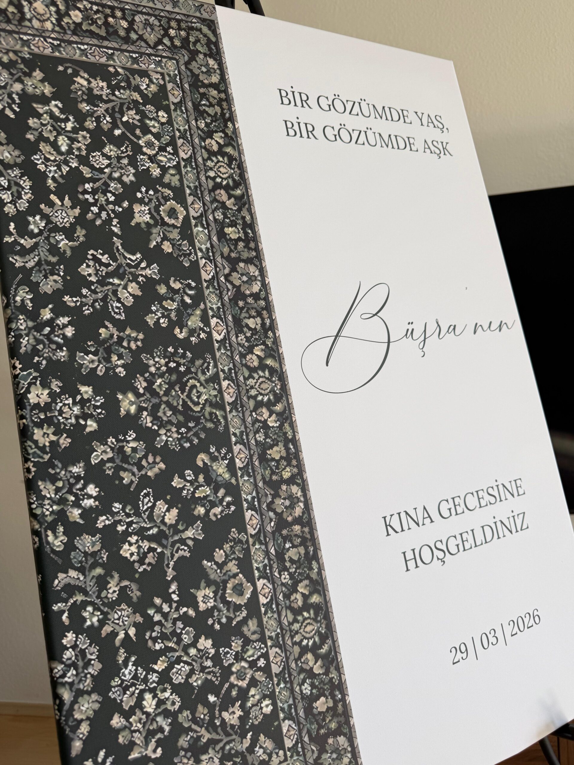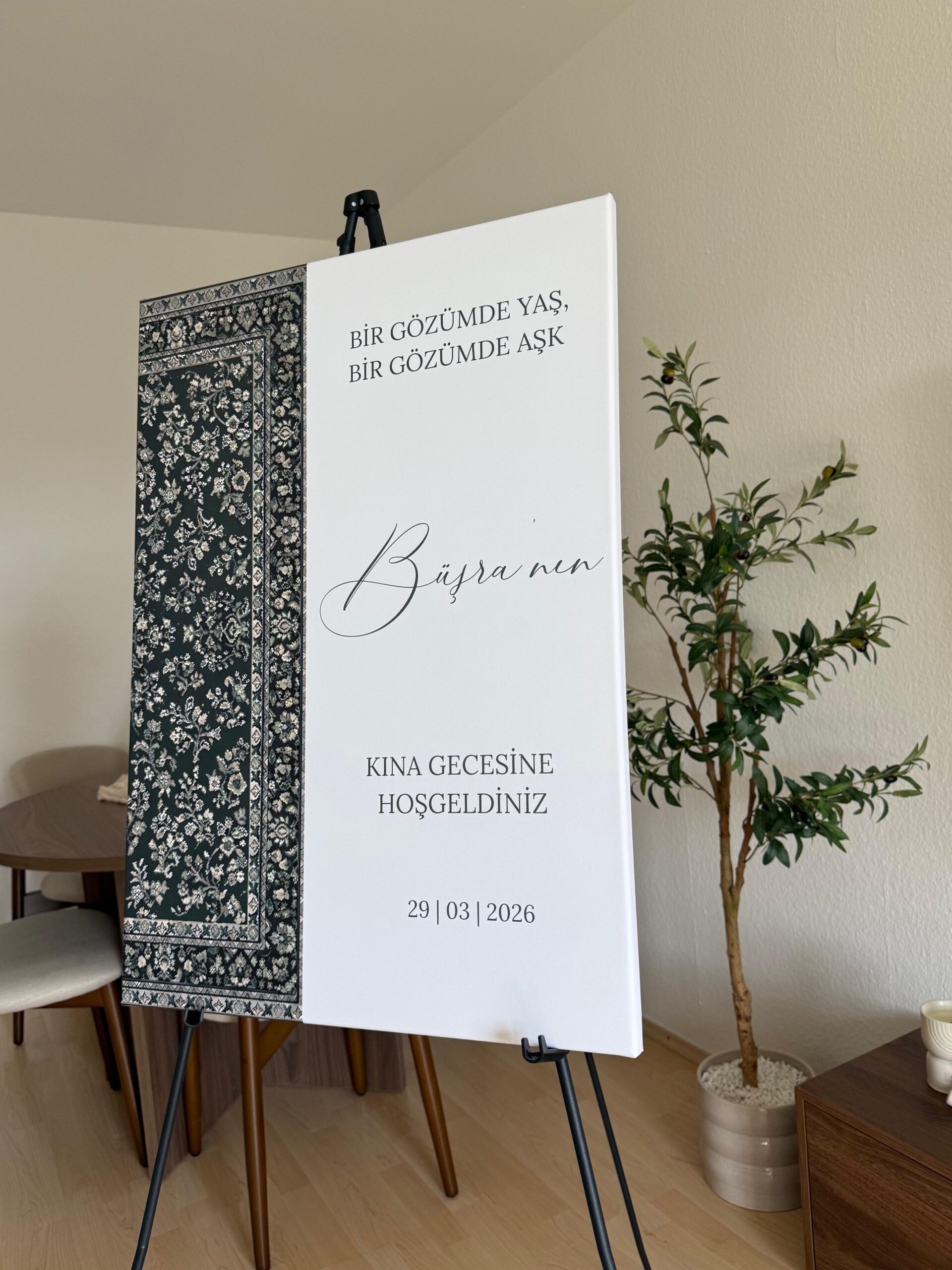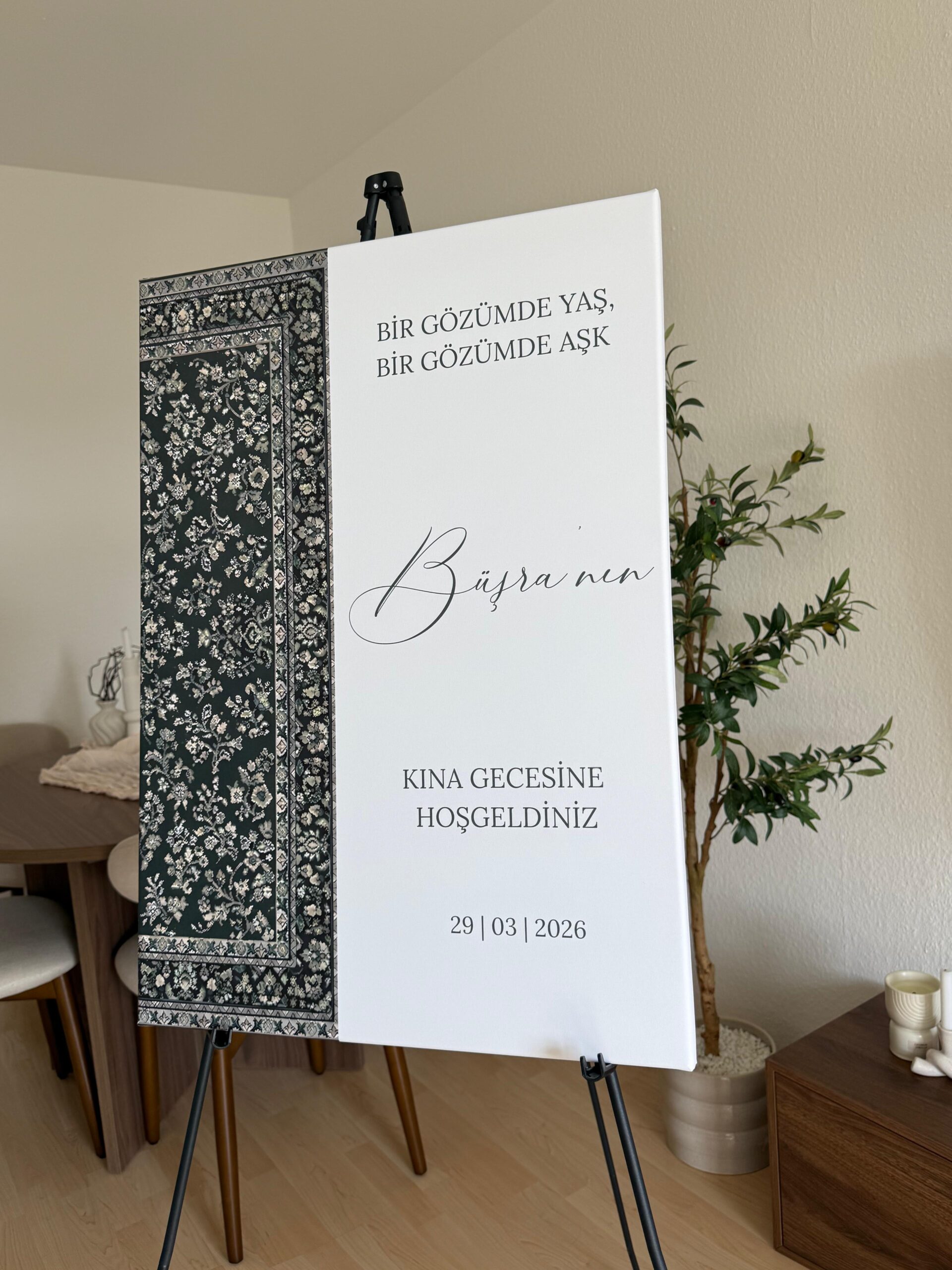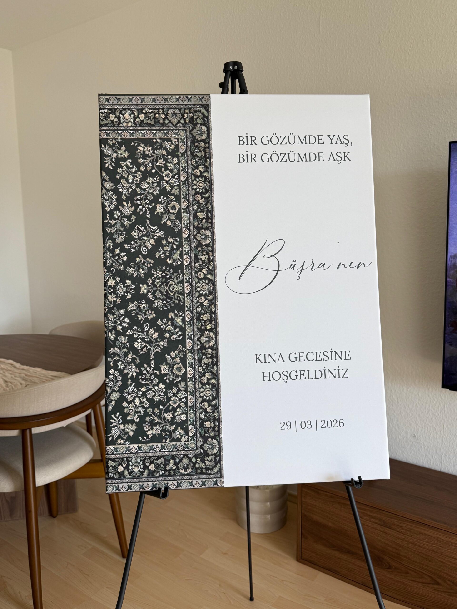 Ob Kına Gecesi, Henna-Abend, Nikah, Nişan, Söz, Standesamt oder Hochzeit – diese personalisierte Empfangstafel Hochzeit verleiht deinem Event eine besondere Atmosphäre und verbindet Tradition mit modernem Design.