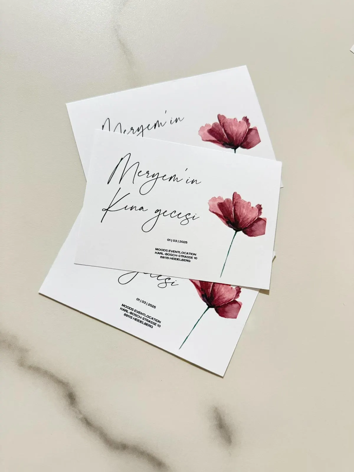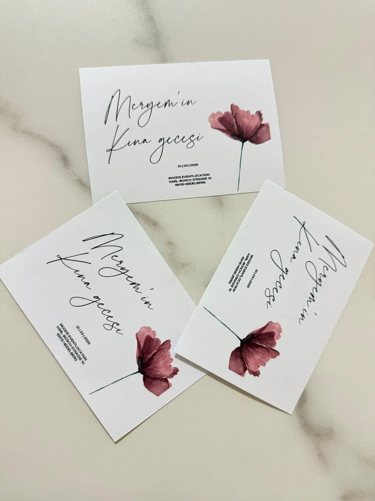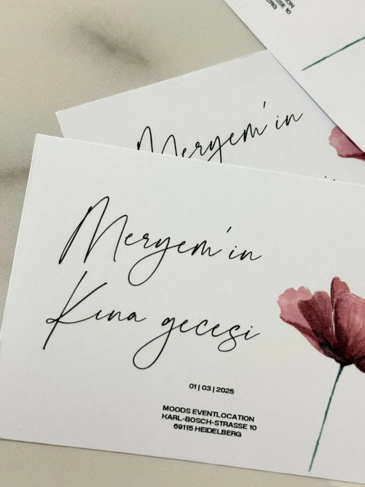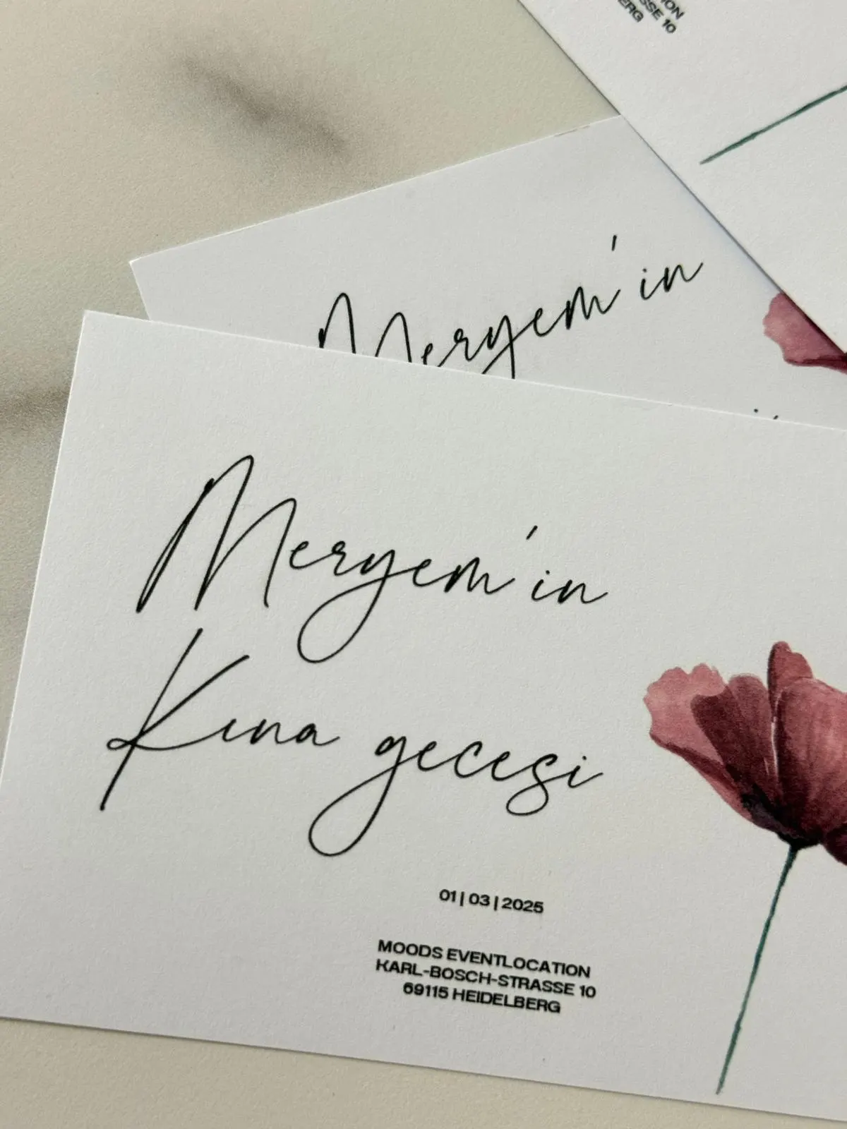 Die Einladung ist eines der wichtigsten Elemente jeder Feier. Eine personalisierte Kına Davetiye vermittelt Stil, Qualität und Vorfreude auf deinen besonderen Tag.